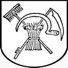 Description: In the centre a sheaf of wheat, surmounted by a sickle; behind it, a rake is