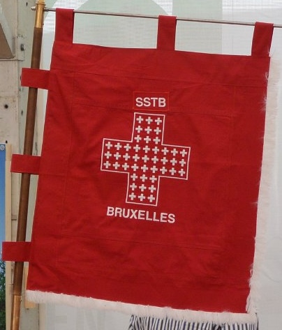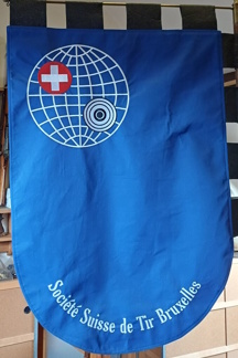 Flags of the Swiss Shooting Society Brussels, Belgium (Société Suisse de Tir Bruxelles).