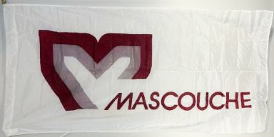 The flag of Mascouche is white with the municipal logo.