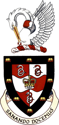 The Coat of Arms of the University of Ottawa, which was received from the Governor General of Canada as a grant from the Canadian Crown, is based on concepts suggested in 1989 by a committee headed by Rector Antoine D'Iorio and on a shield designed in 1971 by the former Dean of Medicine, the late Jean-Jacques Lussier who had an abiding interest in heraldry. The concept of the shield is a metaphor for the University. On the red (garnet) shield rest silver (grey) escutcheons that symbolize the various faculties, departments and sections of the University. A broad silver band symbolizes the union of the whole institution. On it are two open books representing teaching and research, which are the two essential functions of a university. They bear, appearing separate but equal, the fleur-de-lys and rose as symbols of the two great traditions that have influenced our University since the middle of the 19th century.