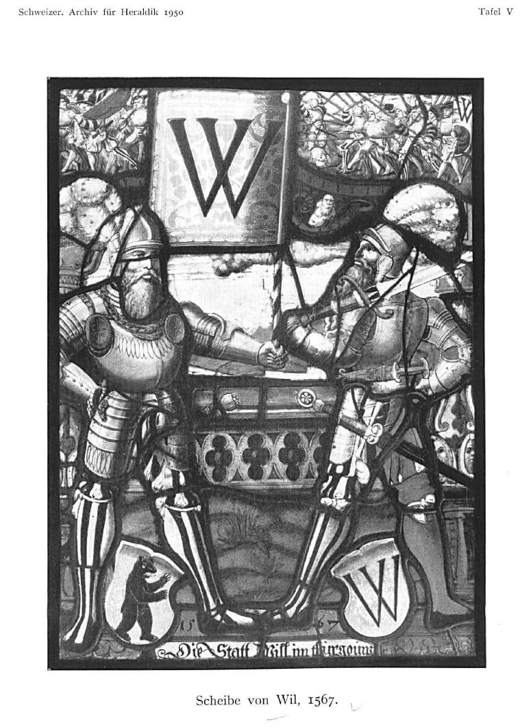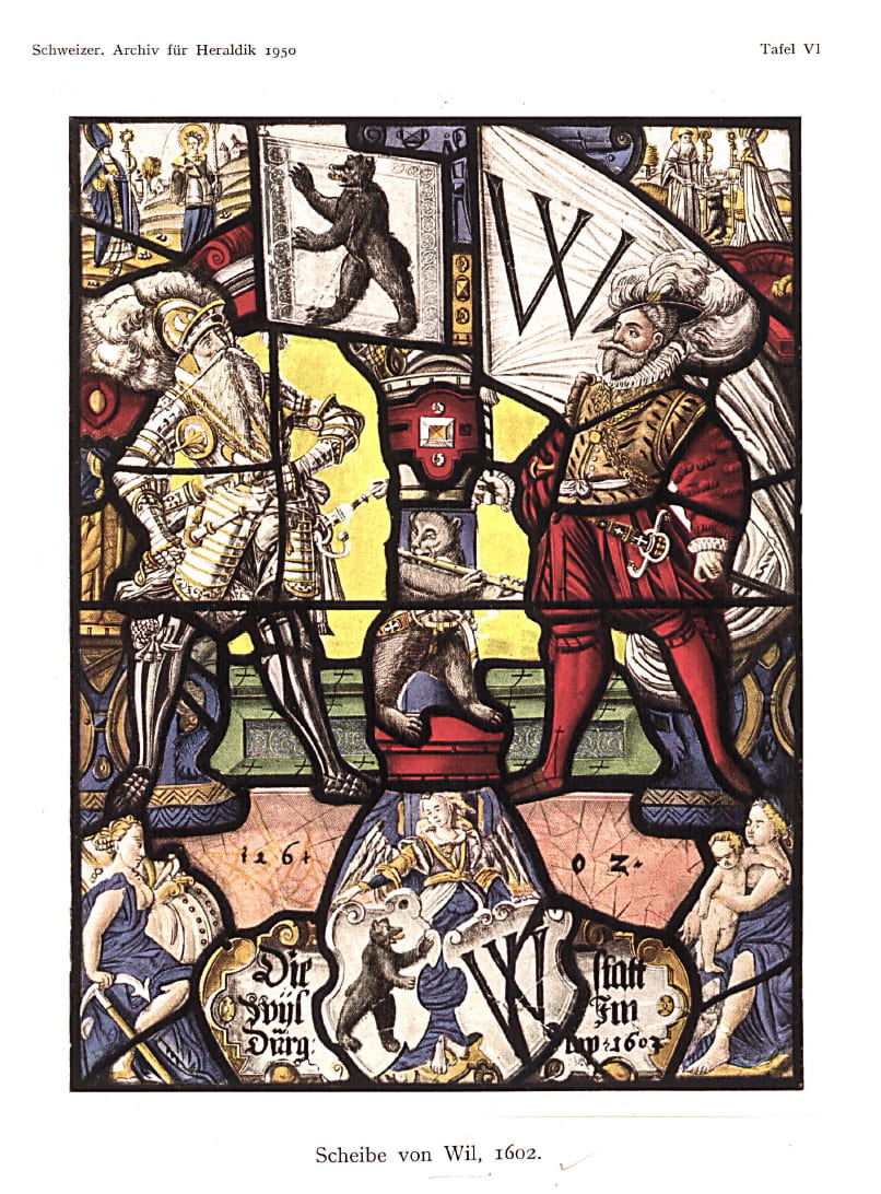 Per pale Argent a bear rampant Sable langued and viriled Gulles Sable in chief a snail shell Or and in base a W of the First.