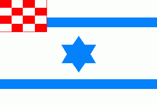 The flag was white with a centred blue 6-point star between two blue horizontal stripes.