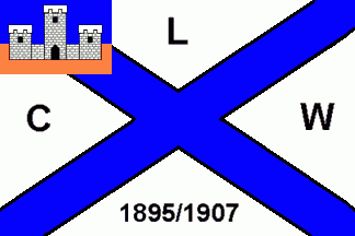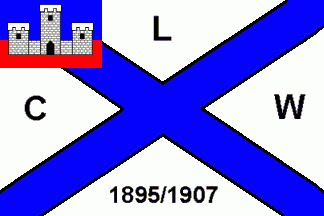 Both have black capital letters and numbers in the white fields: "L"(top), "C"(hoist), "W"(fly) and "1895/1907"(bottom).