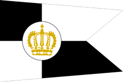 It was a swallow tail pennant off-centred quartered of black and white. On the common point of all quarters was a white disc charged with a golden imperial crown.