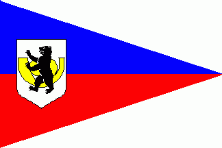 Due to NS-terms the club was renamed in 1940 or earlier to a sport community (German: Sport Gemeinschaft). The flag was white charged with a pennant parted horizontally of blue and red. Shifted to hoist on a shield is a bear of Berlin in front of a post horn.
