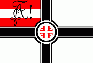 The upper hoist quarter was a black-red-yellow tricolour. The colours in canton are those of the German athletics movement. On lower fly was the black circle of the fraternity.