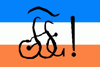 The white flag was parted by a triband in bend of light blue, white and dark blue. On lower hoist quarter was a red athletics cross, on upper fly quarter the black circle of the fraternity.
