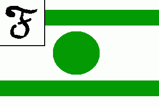 The flag was white with centred green disc between two green horizontal stripes. In white canton was a black Gothic initial "F", separated by thin black lines.