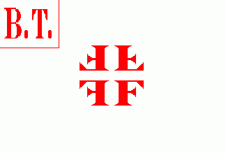 The flag was white with a centred red athletics cross (see above) and a red inscription "B.T." on a white canton separated by two thin red lines.