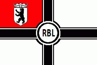 The white flag was parted by a centred black cotized cross, on centre was a white disc cotized black-white-black with black inscription "RBL".