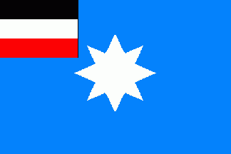The 1905 flag (see left image above), perhaps erroneous, was blue. On centre a white 8-point star and on canton a black-white-red horizontal tricolour.
