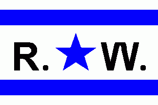 On centre a blue 5-point star, flanked by dotted black initials "R."(hoist) and "W."(fly).