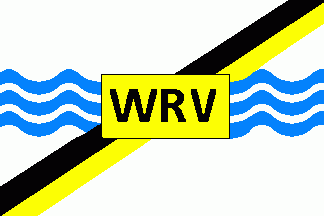 Over all on centre on a yellow rectangle is a black inscription "WRV", superimposing three blue wavy horizontal lines