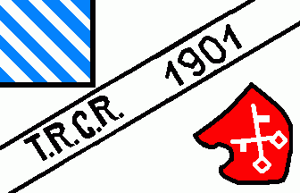 The white flag was parted by a white bend sinister fimbriated black with black inscription "T.R.C.R. 1901".