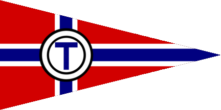 The club is located in Hamburg. The pennant is white divided by a red cross, which is in its centre superimposed by a white disc, fimbriated dark blue, with an upright dark blue anchor, which is superimposed by a red steering wheel. On the lower fimbriation there are white capitals "TYC".