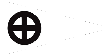 The pennant is white. Shifted to hoist is a throughout black cross in a black annulet.