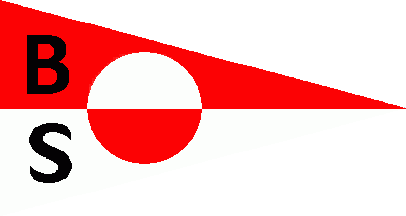 The pennant is white with a centred blue inscription "BS". Shifted to hoist are two blue waves under a green eradicated tree. Bogø is a small island in the Storstrømmen between Zealand and Falster.