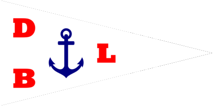 The pennant is white with a blue anchor in pale shifted to hoist and flanked by red initials "DB " (hoist) and "L " (fly). Dronningborg is a township of Randers City.