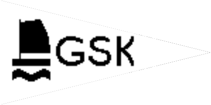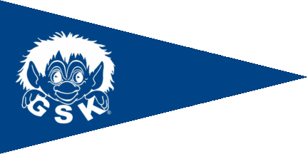 It is a blue pennant with white inscription "GSK" between two thin horizontal white lines.