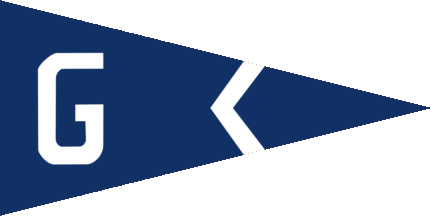 The pennant is white with blue bordure at top and bottom and an inscription "GS" in blue serifed initials shifted to hoist.
