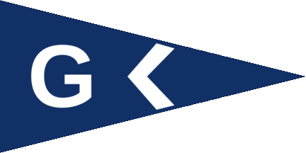 The pennant reported 2014 was purple with white inscription "Gjøl Sejlklub" (see right image above). The current pennant (see left image above) is blue, shifted to hoist is a blue trollĀ“s face lined white with white hair and an embowed white inscription "GSK" below. Gjøl is located west of Aalborg on the Limfjord´s northern bank. The troll face is alluding to the Troll Hills (Danish: Trolde Højene), a local activity park.