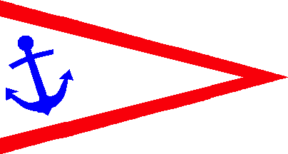 The pennant is white with a red bordure at top and bottom, shifted to hoist is a blue anchor in bend. Marstal is located on the eastern point of Æro Island.