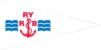 The pennant is red, at hoist is a blue inscription "RB", surrounded by a white rope in circle with a reef knot at ist bottom.