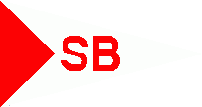 The pennant is white parted by a blue horizontal line, in upper hoist are blue initials "SB", in lower hoist two blue waves in pale.