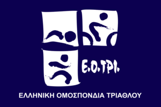 The flag of the Hellenic Triathlon Federation is a dark blue field with the federation's emblem in the center.