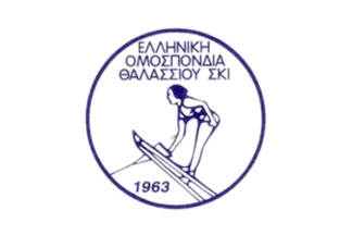 The flags of the Hellenic Water Ski Federation are white with the federation's emblem in the center.