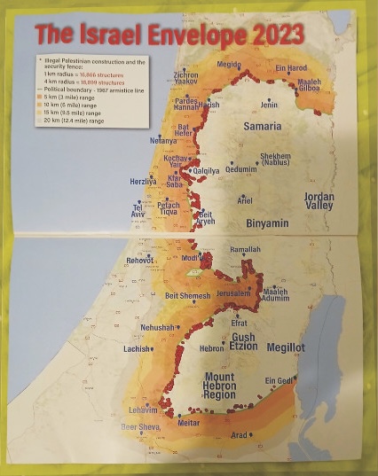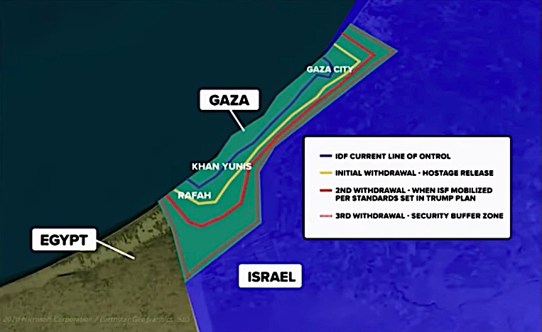 The "Gaza Envelope" refers to the Israeli communities located near the border with the Gaza Strip (see here). Map of disengagement plan from the Gaza Strip, October 2025 (source: tbn.org).