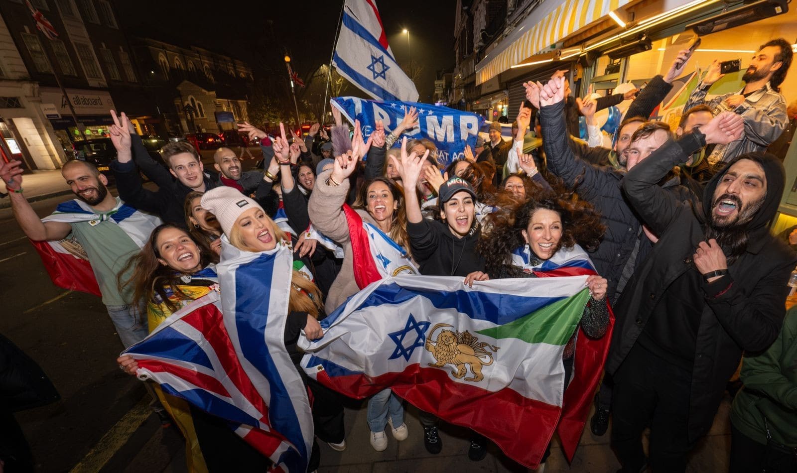 image located by William GarrisonIsrael-Iran friendship flag (Iran flag with state emblem before 1979). Seen in Golders Green, Barnet,