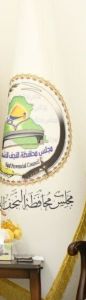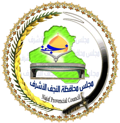 text over a book, placed on a pedestal. Underneath, Najaf Provincial Council is