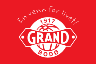 The flags of IK Grand Bodø (Idrettsklubben Grand Bodø) from Bodø are red with the badge centered.