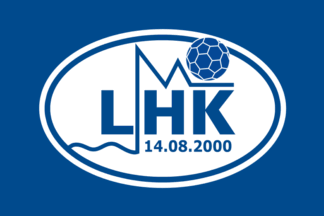 The flag of Leknes HK (Leknes Håndballklubb) from Leknes in Vestvågøy Municipality is blue with the badge centered.
