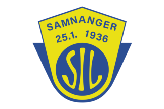 The flag of Samnanger IL (Samnanger Idrettslag) from Tysse in Samnanger Municipality is white with the badge centered.
