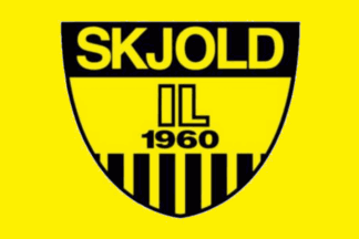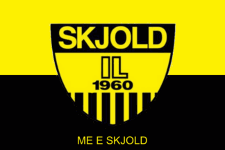 The flag of Skjold IL (Skjold Idrettslag) from Grinde in Tysvær Municipality is yellow or yellow over black with the badge centered.