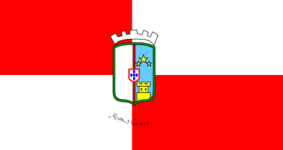 It was a fairly untypical Portuguese municipal flag, with the coat of arms with red scroll centred on a plain white field.
