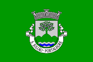 Mural crown Argent with three visible towers and white scroll with inscription in black capitals "S. JULIÃO - PORTALEGRE".