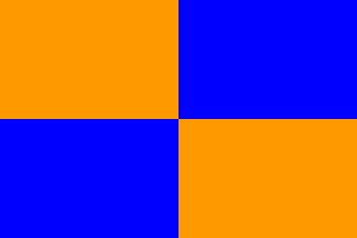 It is a fairly untypical Portuguese communal flag with a field quartered of light orange (!) and dark blue..