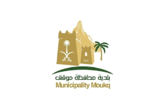 The flag of Mawqaq (Moukq) in Hail Province is white with the logo centered. However, I only found a flag with the old logo.