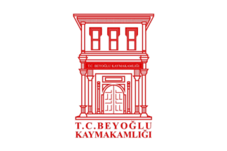 The flag of Beyoğlu is white (photo, or red (photo, photo) with the municipality's emblem. "Belediyesi" means "Municipality".