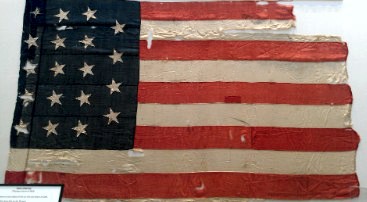 A U.S. flag with 19 stars, but only 9 stripes (missing stripes possibly