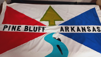 "[...] Aldermen will also consider adopting a new flag for the city, replacing a dated logo that is expensive to purchase, according to Greg Gustek, executive director of the city's Image Campaign committee. The current flag, which flies now above Saracen Landing along Lake Saracen and hangs inside the City Council Chambers, has red and blue triangles framing a blue river and a green pine tree. The new design display an anchor and refers to Pine Bluff as the "Harbor City, the anchor of Southeast Arkansas. [...]