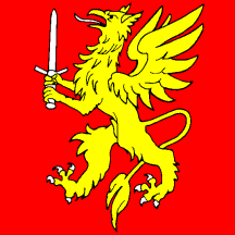 lion) is depicted as lying down, with its head generally facing towards the dexter
