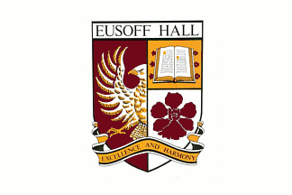 below the horizontal meridian and the flag of Eusoff Hall with a charge set on the vertical meridian