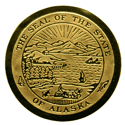 El sello estatal fué originalmente diseñado en 1910 mientras Alaska era un territorio y no un estado.