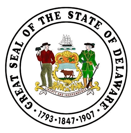 También lleva escrito al rededor "El Gran Sello del Estado de Delaware"