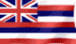 sujetando la bandera de Hawaii y a su lado el escudo de armas. Un ave Fenix sube