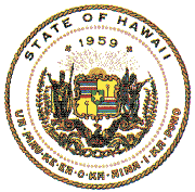 prominently.Wording on the seal reads "State of Hawaii" across the top.